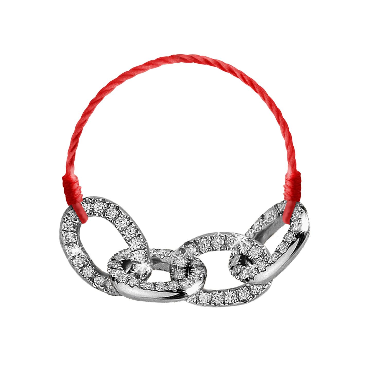 ...Sacred diamonds…! Four diamond pavé links adorn this precious string ring, for a total of 0.25 carats. Offered in four colours of gold and in 80 string colours.
