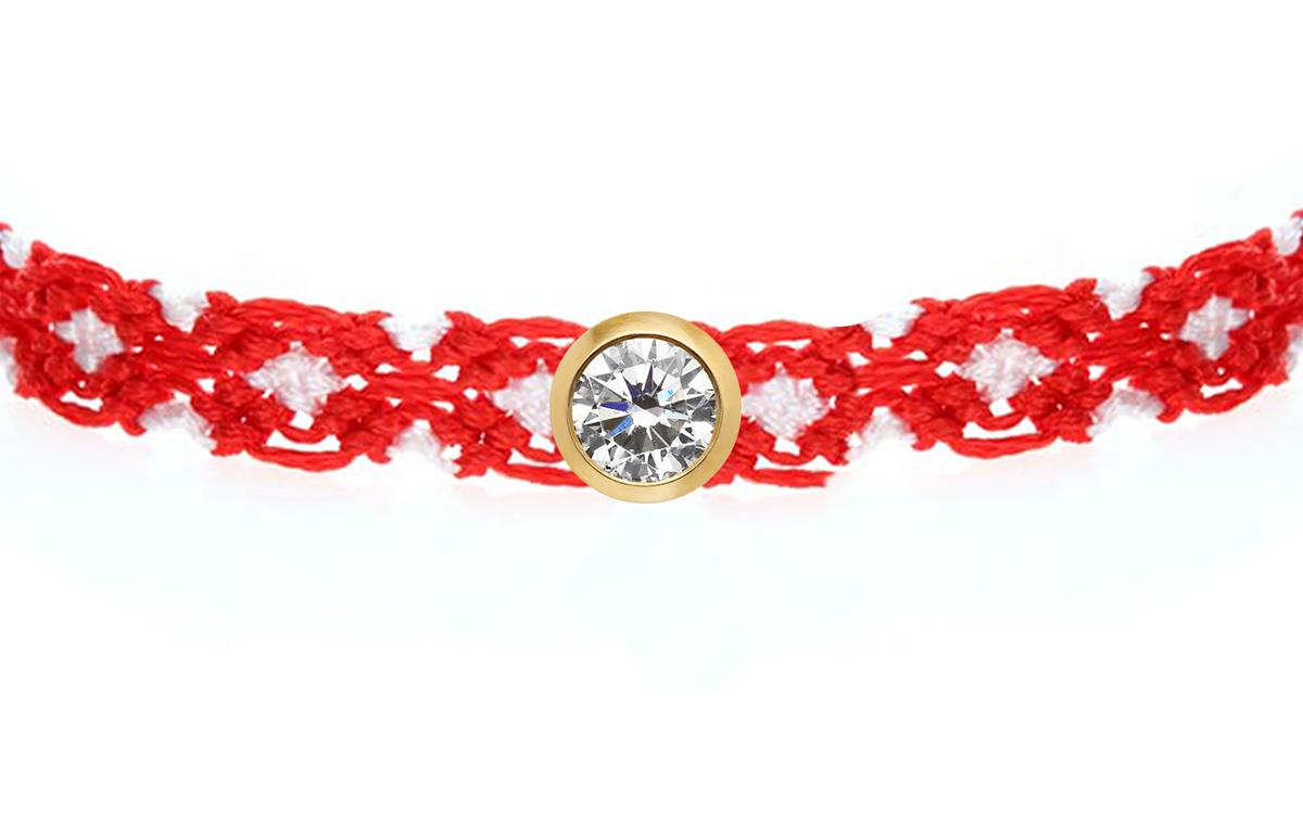 The Brazilian bracelet you remember from your vacation and your happiest memories is now decorated with a 0.10 carat diamond mounted in a gold setting with an 18 carat gold clasp for more style and sparkle without losing any of its colours or character. Three linked rings make the piece adjustable. It is offered in white or yellow gold and in nine colour combinations. (Please note that the motif of the in-house woven Brazilian bracelet may vary within the same colour combination.)