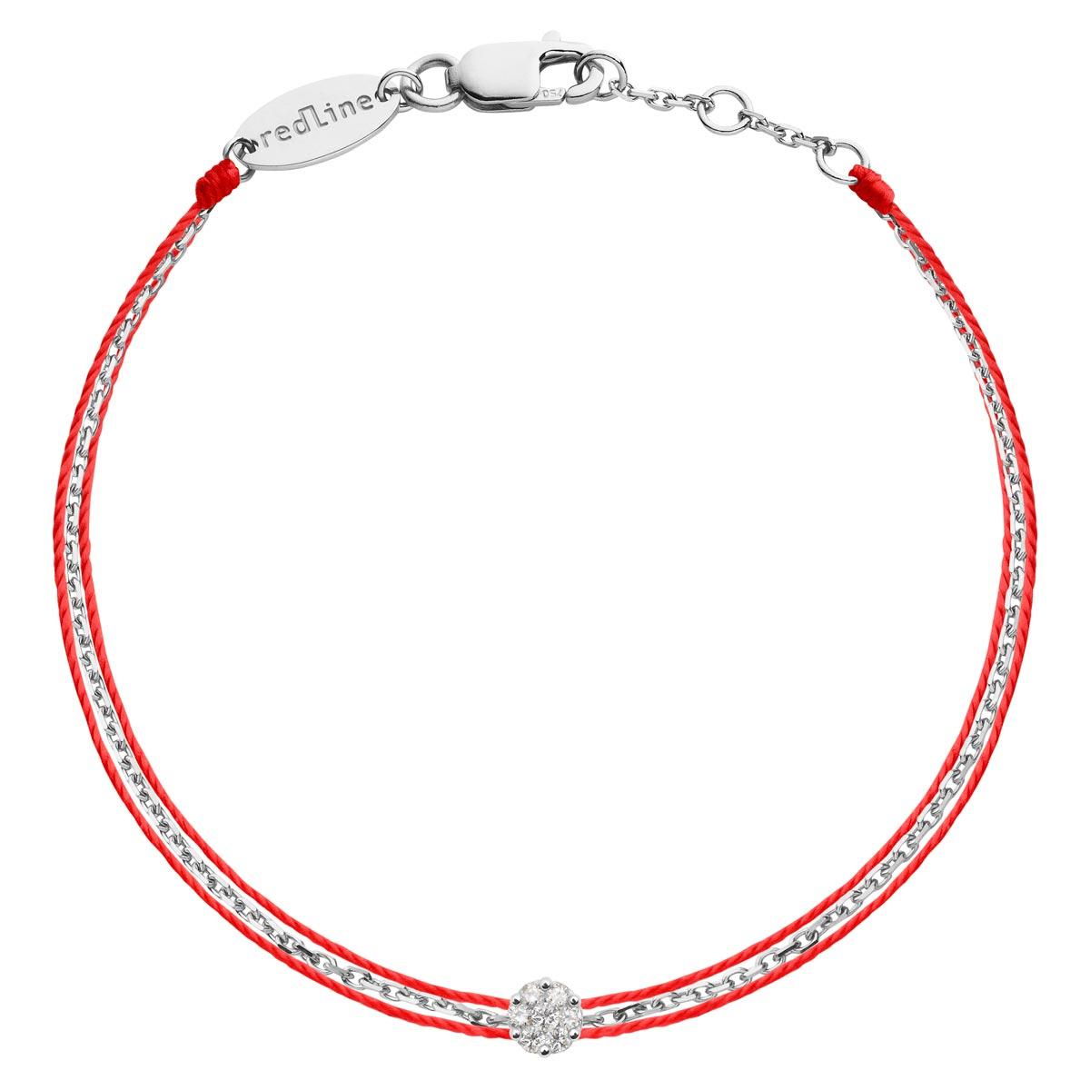 Seven diamonds make 0.05 carats mounted in a claw setting in this surprising RedLine model, whose dazzle fools the eye... A gold chain ond two coloured strings are allied with an eternal diamond to create an original and colourful piece. The bracelet is adjustable thanks to an 18K gold clasp and three linked rings. It is offered in white and yellow gold and in 80 string colours