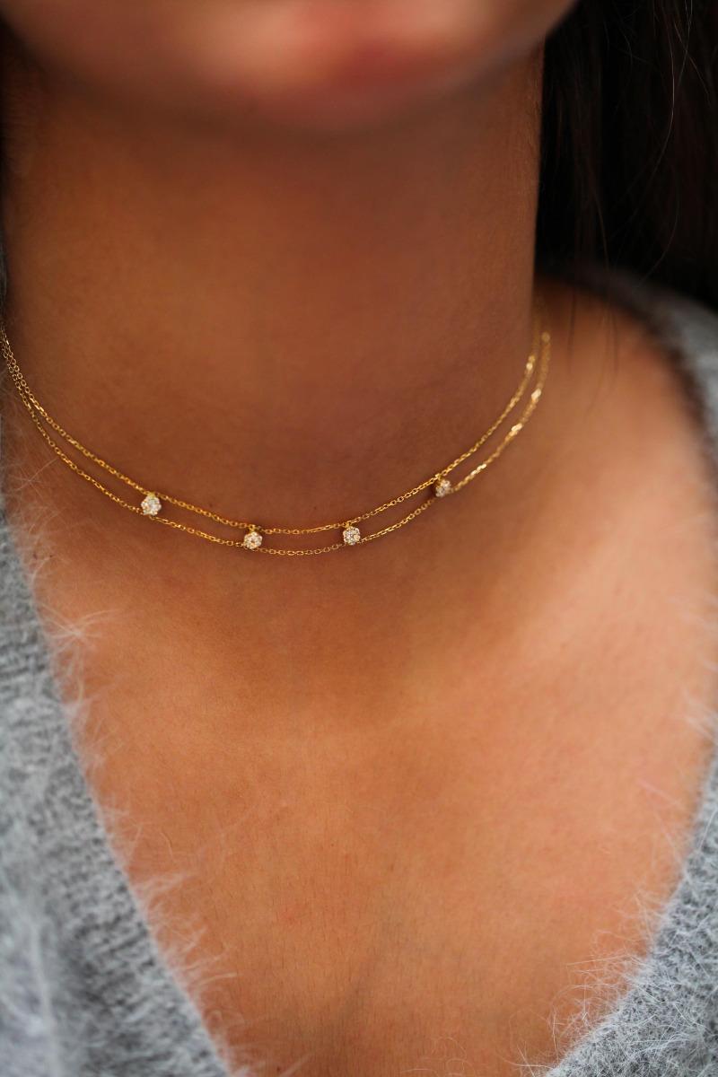 Illusion Hanabi chaine IV "exclu" Illusion Hanabi Yellow Gold Chain Necklace with 4 diamonds