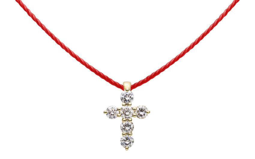 A symbol of hope for a precious and elegant necklace. The adorned cross endowed with diamonds by RedLine shines bright and is one of the staples of the brand. This jewel cross is laid on the ultra-resistant Redline thread that is available in 86 different colors.