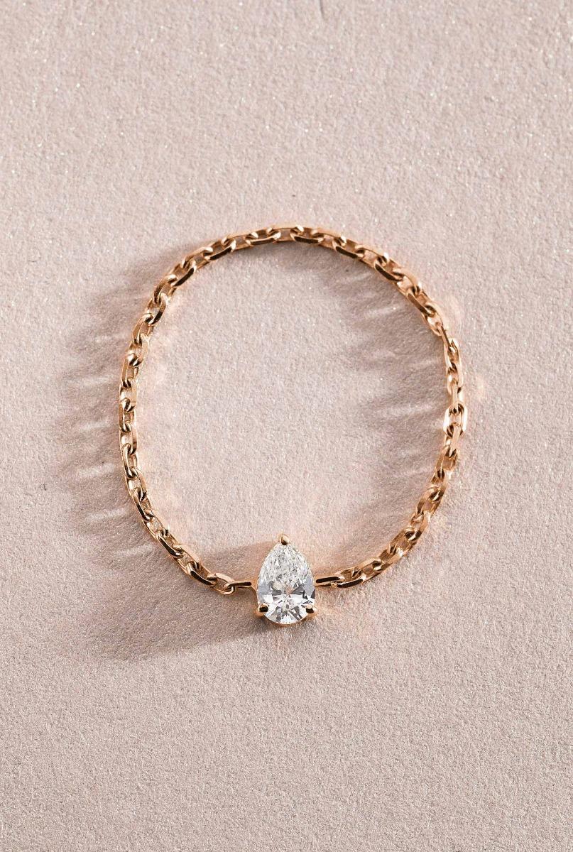 Redline presents its « Altesse » all chain ring. A thin 18-carat gold chain with a pear diamond makes this ring a must-have of this season. Always Available in several colors of gold, the discretion of this jewel will surprise you.