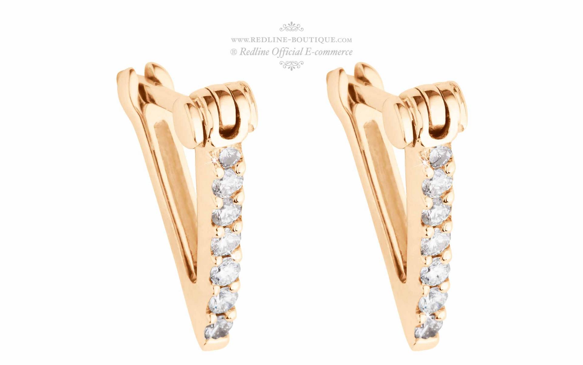Redline allies delicacy and originality for its new peak earring. Two triangles paved of diamonds in vogue fashion trend.